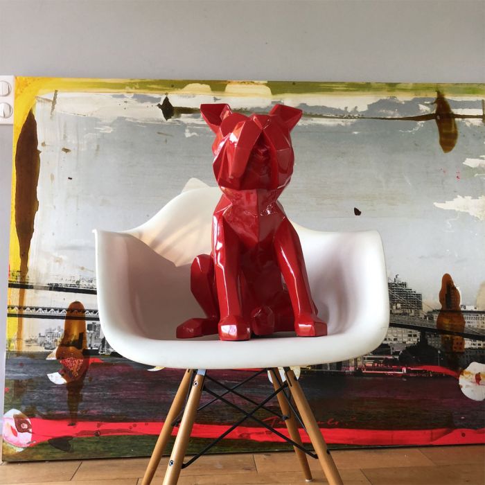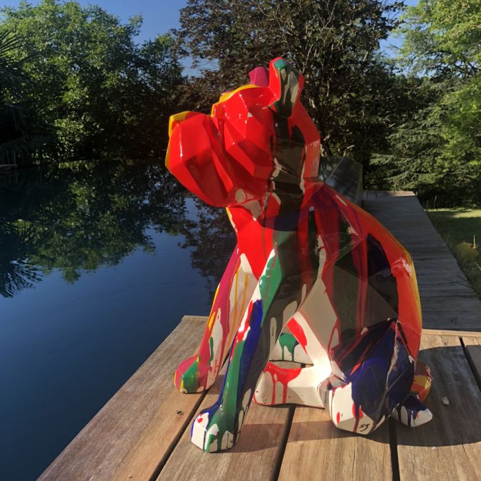 La Statue Bulldog d'Artypopart, conçue sous la direction artistique de SJ, est une pièce qui s'affirme. Ce Bulldog polygonal est travaillé dans un style « Low Poly », conférant à ses traits caractéristiques (museau court, posture solide) une esthétique moderne et facettée. L'inspiration de cette sculpture vient du chien Simba, le cane corso de SJ, ajoutant une dimension personnelle et une authenticité émotionnelle à l'œuvre. Qu'il soit proposé en laque monochrome (rouge, bleu) ou dans une finition Pop Art (peinture coulante), ce chien symbolise la force tranquille et la détermination. Son design audacieux et ludique le rend compatible avec tous les intérieurs, du plus classique au plus contemporain.