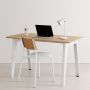 Le bureau NEW MODERN en bois éco-certifié est idéal pour télétravailler sur un bureau individuel confortable avec deux tailles au choix selon votre coin bureau. Une table NEW MODERN est composée de 2 piètements en acier dans lesquels s’insèrent deux poutres de support en acier inoxydable. Le plateau s’insère sur la structure afin d’y être vissé (dans le cas des plus grands formats, une traverse mobile viendra compléter l’ensemble au centre du plateau). NEW MODERN est le fruit d’un an de travail et d’itérations pour créer un système de table modulable aussi efficace sur les plans fonctionnels et industriels qu’en matière de durabilité. La qualité de sa conception permet au système NEW MODERN d’être décliné en plusieurs formes et tailles (du bureau individuel à la table à manger XL en passant par la table ronde) et est disponible avec des plateaux en bois éco-certifié et en plastique recyclé.