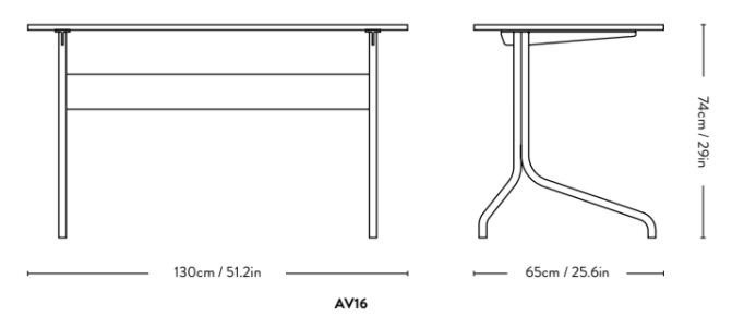Matériaux : plateau stratifié avec du linoléum et bords plaqués, pieds en tubes d’acier pliés