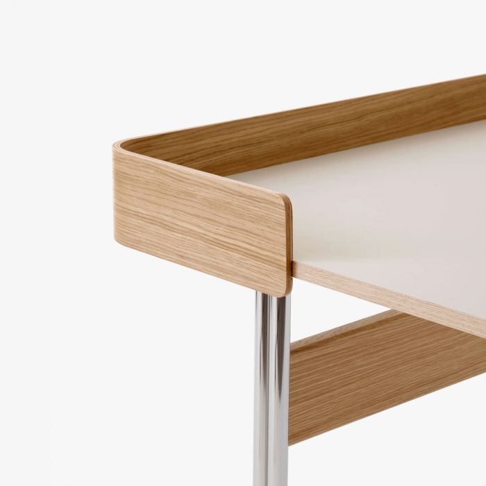 Matériaux : plateau laminé avec du linoléum et bords plaqués, pieds en acier pliés, panneau arrière fabriqué en placage pressé