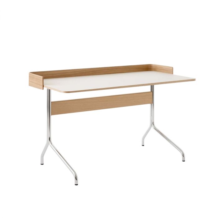 Lorsqu'Anderssen & Voll a créé sa série de chaises Pavilion, le duo primé s'est inspiré de l'emblématique Langelinie Pavilion. Maintenant, cette esthétique légère et lyrique a été traduite en un bureau compact destiné à convenir à la fois aux espaces de bureau et à la maison. Conçu au début de la pandémie, le bureau Pavilion a pris en compte les exigences du travail à domicile avec une version dotée d'un panneau arrière.