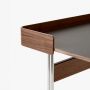 Coloris : fer charbon 4166/ noyer laqué et plateau coloris fer, chêne laqué et plateau en coloris champignon