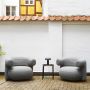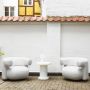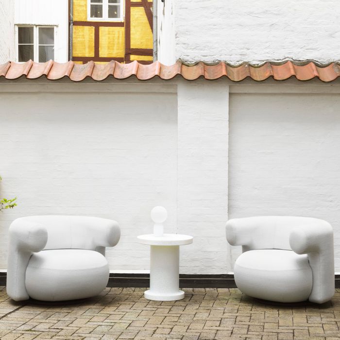 Burra de Normann Copenhagen par Simon Legald. Conçue pour une variété d'environnements extérieurs, le fauteuil Burra conserve le confort et la silhouette sculpturale de l'original tout en intégrant des matériaux conçus pour les espaces extérieurs. Son assise arrondie est équipée d'un mécanisme de retour pivotant pour une mobilité accrue. Elle est livrée avec une housse de protection pour la protéger lorsqu'elle n'est pas utilisée. La base du fauteuil Burra est fabriquée en bois certifié FSC™️ (FSC-C163461) et en bois provenant d'autres sources contrôlées.