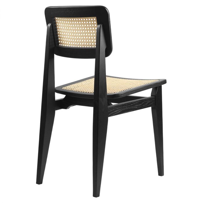 C-chair cane française de Gubi par Marcel Gascoin. L'une des pièces les plus connues de Marcel Gascoin, la chaise de salle à manger C-Chair, a été conçue en 1947. La chaise représente non seulement le pouvoir esthétique et pratique des créations de Gascoin, mais aussi la conscience sociale qu'il a fortement démontrée au cours des années d'après-guerre En France. Le C-Chair a été créé à l'origine par nécessité pour s'adapter aux nouvelles tailles de maisons construites à la fin de la Seconde Guerre mondiale, où Gascoin a compensé le manque d'espace en créant des meubles simples et fonctionnels.