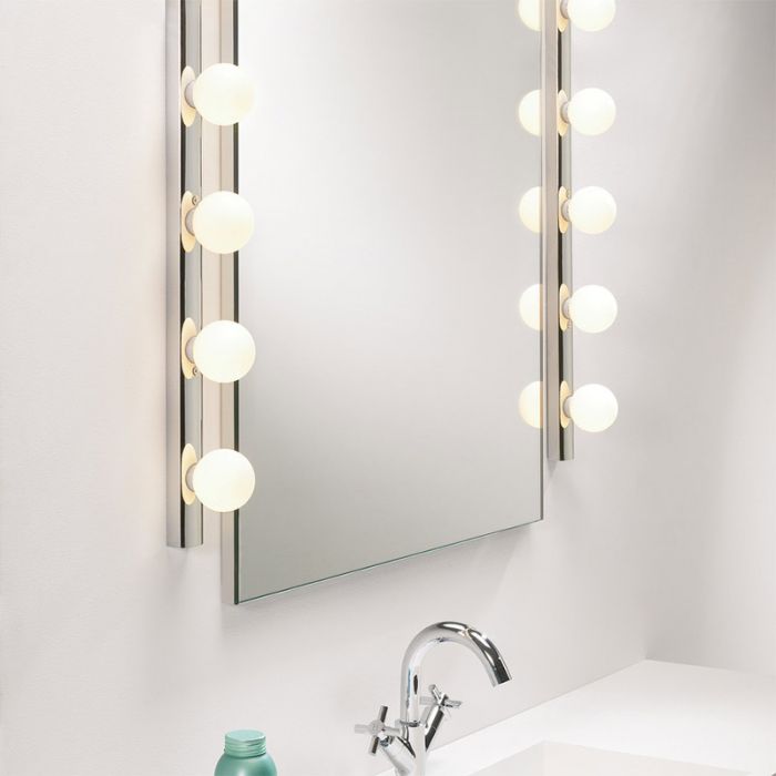 Applique pour salle de bain Cabaret de Astro. L'applique est dans la norme d'étanchéité IP44, c'est à dire protégé contre les corps solides supérieurs à 1 mm (ex : outils fins, clous) et protégé contre les projections d'eau de toutes directions.