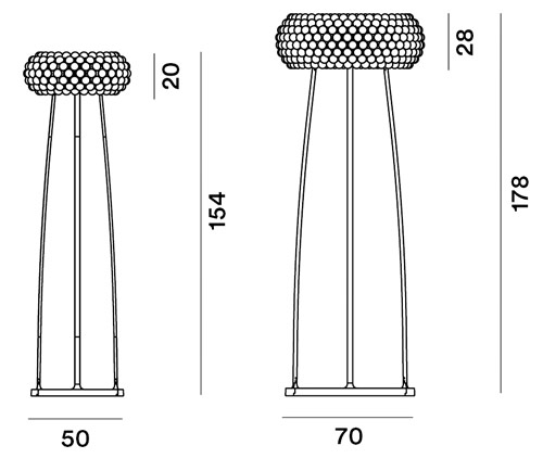 Cette création est marquée à tous les niveaux par la symbiose parfaite d’un design extravagant d’une part et d’une élégance pleine de fantaisie d’autre part qui s’enrichissent mutuellement. La forme sphérique de la caboche diffuse à travers les sphères transparentes un éclairage parfait créant un astre lumineux aux reflets purs et délicats. Son diffuseur en verre soufflé éclaire vers le haut et le bas procurant une sensation visuelle unique. Le lampadaire est équipé d'un dimmer pour varier l'intensité lumineuse. Ce luminaire délicat à l’aspect de bijou précieux apporte une touche sophistiquée et design à votre intérieur.