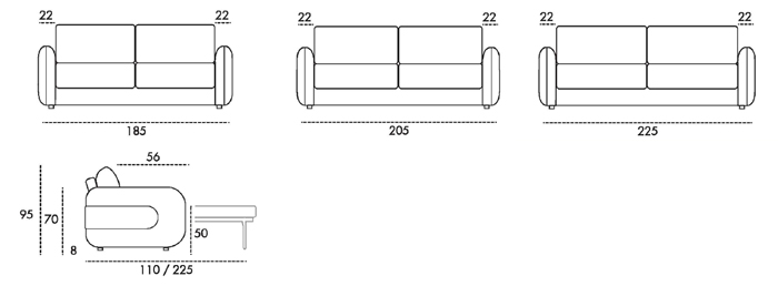 Taille 1 : H 95 x L 185 x Prof. 110-225 cm