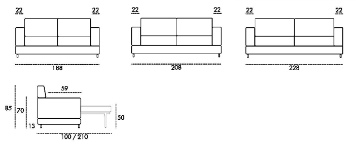 Taille 2 : H 85 x L 208 x Prof. 100-210 cm