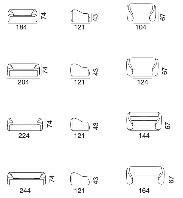Taille 1 : H 74 x L 184 x Prof. 121 cm