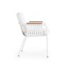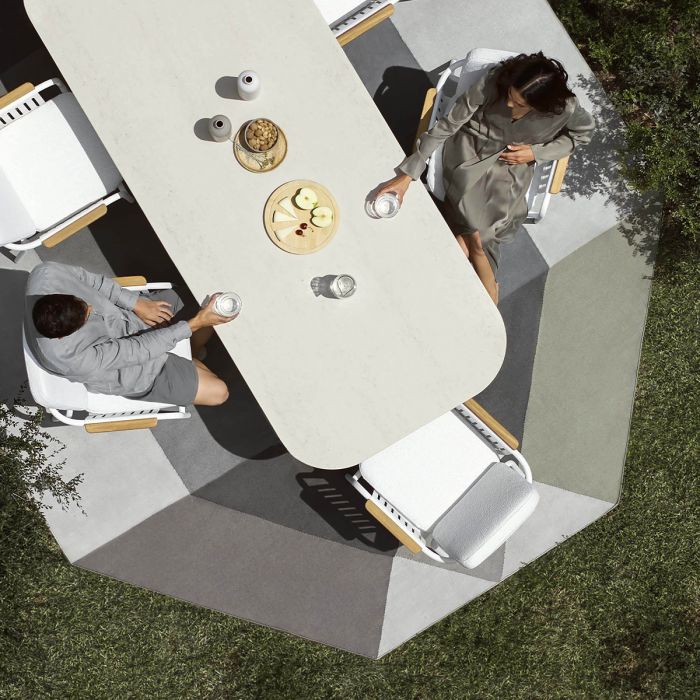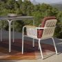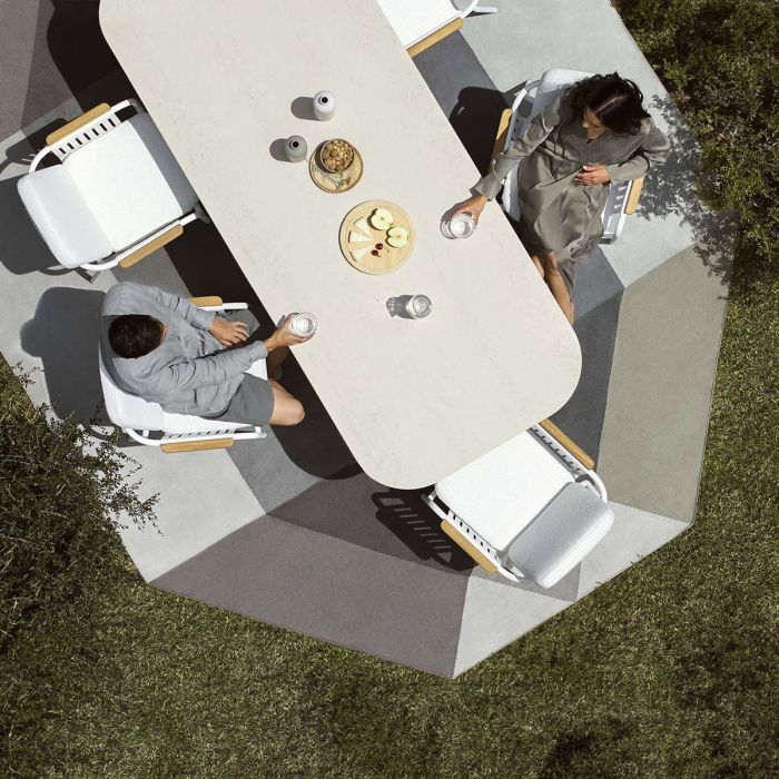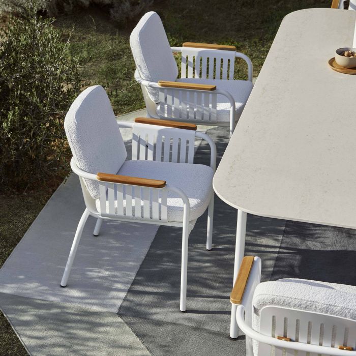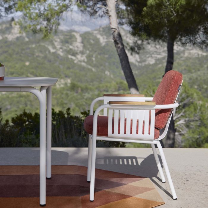 La collection CAPA combine le style minimaliste de GANDIABLASCO avec le hygge, un concept philosophique qui encourage à profiter de choses simples en compagnie de la famille et des amis. Créée par le designer danois Søren Rose , cette collection de mobilier d'extérieur présente un style essentiel, avec des lignes architecturales, typiques du design scandinave. Le fauteuil de salle à manger CAPA est une chaise design avec une structure légère composée de profilés tubulaires et de tôle d'aluminium fendue découpée au laser, tandis que ses accoudoirs sont disponibles en bois d'iroko ou en porcelaine Dekton® by Cosentino. Les coussins de cette chaise exclusive sont confortables et résistants, idéaux pour profiter de moments de détente aussi bien dans le jardin ou au bord de la piscine que pour les grandes surfaces contractuelles d'hôtels ou de restaurants. Le fauteuil de salle à manger CAPA est une conception originale de Søren Rose pour GANDIABLASCO .