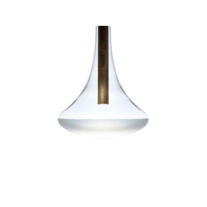 Cathode de Davide Groppi. Une ampoule de verre soufflé bouche et à l'aspect scientifique. La forme évoque celle d’une ampoule jamais née, atmosphères steampunk, situations où les instruments étaient actionnés par les premières formes d’électricité. L’ampoule classique sans futur devient un appareil à diodes lumineuses. Comment aurait été le passé si le futur était arrivé plus tôt ?
