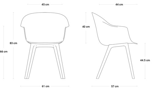 H 83 x larg. 61 x prof. 57 cm (H d’assise 44,5 cm)