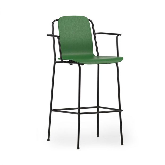 Il y a quelque chose de pratiquement graphique dans la façon dont le cadre en acier mince se développe sous le siège et le dossier de la chaise Studio, encadrant la coque moulée dans un design aéré. Les lignes fluides se détachent dans une silhouette accrocheuse, comme un dessin au trait ou un pictogramme, tout comme les espaces vides entre le cadre et le dos agissent pour définir la forme. La construction simple en placage et tube d'acier oriente les pensées vers les anciennes chaises d'usine françaises, donnant à Studio ses notes industrielles. Un design qui attire l'attention, mais rayonne de pure simplicité. La série polyvalente de chaises Studio est conçue pour une utilisation dans les espaces domestiques et publics. La série comprend des chaises, des fauteuils et des tabourets de bar en deux hauteurs. Tous les modèles sont empilables, ce qui rend la gamme adaptée aux restaurants et aux établissements d'enseignement nécessitant des zones transformables. Le cadre en acier permet de saisir facilement les chaises et de les déplacer selon les besoins.