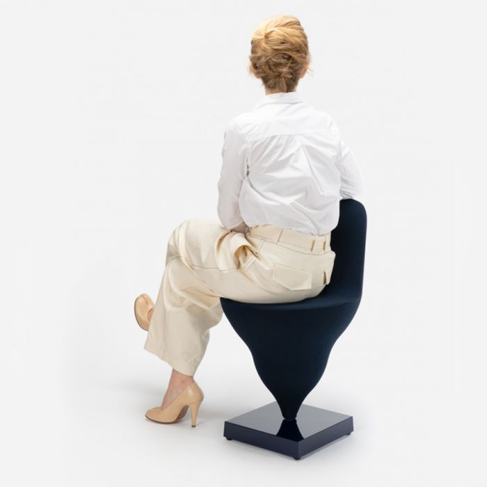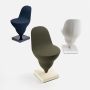 Dessiner une chaise consiste le plus souvent à chercher l’essence de la typologie pour la réduire à son minimum dans l’espoir d’en faire un signe si pur qu’il en devienne universel et qu’il ne réfère plus à rien d’autre qu’à sa fonction. Gelato propose tout l’inverse! Avec elle l’expression formelle de la fonction est réduite au strict minimum au profit d’une formalisation plastique libre de toute préconception ou acquis. Débarrassée de tous les signes et caractéristiques qui permettent d’identifier ou de distinguer une chaise, Gelato fait table rase de nos représentations et propose une totale remise en question. Véritable statement, la chaise Gelato de Jean-Baptiste Fastrez, fluide et élancée, impose une présence sculpturale hors normes renforcée par un contraste brutal avec la géométrie élémentaire de son piédestal dans lequel le corps de la chaise vient s’ancrer pour ne former plus qu’un. Sculpture ou chaise, l’ambiguïté demeure jusqu’à s’y assoir et éprouver son total confort et son caractère accueillant. Il s’agit bien d’une chaise mais de celles qui considèrent que le peu de temps passé assis grâce à elles ne peut justifier de les réduire à leur seule fonction. Outre sa fonction principale, Gelato propose une fonction officieuse qui consiste à habiter et entrer en conversation avec l’espace et à interagir avec son utilisateur en suscitant interrogations et/ou contemplation. Passant ainsi d’objet fonctionnel à objet activé au-delà de son usage, la chaise Gelato prend soin de n’être pas qu’un objet inanimé et d’exister au-delà de sa fonction. Fabriquée en France, ultra robuste, la chaise Gelato met en œuvre des matériaux recyclés et des techniques de fabrication sans déchet. Grâce à son zip invisible sa housse sans couture se retire très facilement, passe à la machine à laver et s’enfile à nouveau comme on enfilerait une robe ajustée zippée dans le dos. Et si après avoir choisi la housse Blueberry aujourd’hui vous décidiez demain de la rhabiller avec la housse Lime vous pourriez toujours la commander et la changer vous-même en moins de 5 minutes !