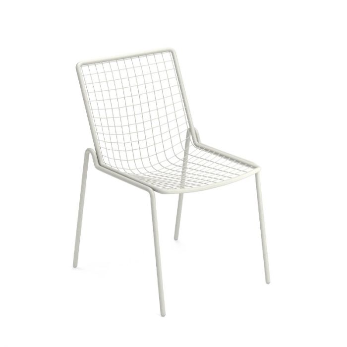 RIO R50 présente une structure en tube d’acier ASFORM, acier de haute qualité doté de capacités mécaniques élevées et d’une haute résistance au poids. Le tube d’acier se caractérise par un « R » bien visible dans la zone de jonction entre l’assise et le dossier. Toutes les soudures de nature structurelle sont effectuées suivant la technologie Ming, qui assure une meilleure résistance aux sollicitations et réduit le risque de rouille, tandis que, pour une plus grande précision, le grillage en ronds d’acier est électrosoudé à la structure. Comme pour tous les produits EMU en acier, il est prévu un pré-traitement de cataphorèse, puis l’application d’une peinture poudre thermodurcissable ; le produit est ainsi recouvert d’une couche de peinture d’une épaisseur homogène, présentant un degré élevé d’adhérence et de résistance. La présence d’embouts en nylon à l’extrémité des pieds permet de protéger et de mieux déplacer le produit.