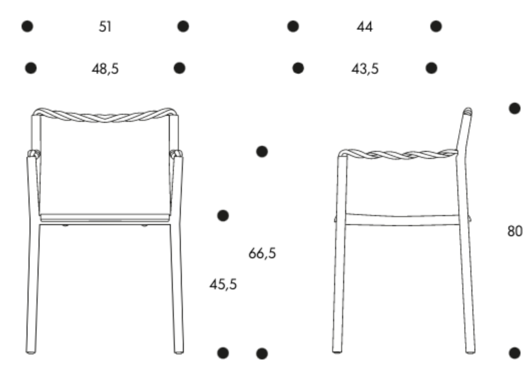 Plus comme une silhouette qu'un bloc solide, la Rope Chair est un dessin au trait traduit en trois dimensions, un simple geste artistique rendu dans l'espace. Conçue par Ronan & Erwan Bouroullec, la chaise est une synthèse de contrastes : ingénierie sophistiquée et expression créative, structure solide et éléments flexibles, tubes rigides et corde souple. Conçue pour un usage marin, la corde est au cœur du confort inattendu de la chaise ; élément porteur de la construction, il permet à la chaise de s'adapter à ceux qui l'utilisent. Là où d'autres chaises dictent une façon spécifique de s'asseoir, la chaise Rope invite la créativité dans la posture, encourageant le mouvement dynamique et les changements de position. Lorsque l'assise se lève, l'armature de la chaise porte les traces du corps qu'elle a soutenu en dernier lieu, l'empreinte d'un utilisateur qui co-définit sa forme.