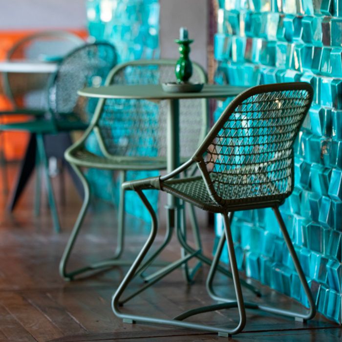 Chaise Sixties de Fermob par Frédéric Sofia. Dotée d’une structure robuste en aluminium et d’une assise formée d’un tressage en fibres synthétique polyéthylène outdoor très résistant, cette chaise de jardin évolue parfaitement en extérieur. Mais, nomade par excellence, étant donné son poids si léger, et ultra-compacte, elle rentrera aussi avec plaisir dans votre intérieur. Son tressage aéré et douillet invite à passer de bons moments attablés… Fait de polymère, il est ultra confortable, avec ses motifs exclusifs légers et stylés, et sa forme emboîtante. Le design tout en rondeurs de votre chaise Sixties explique aussi votre envie de prolonger tous vos repas ! Envie d’une chaise qui vous fait du bien avec son style qui vous transporte tout droit dans les sixties ? Craquez pour la chaise Sixties, dans des coloris élégants et raffinés.