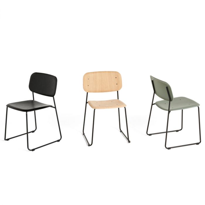 Chaise soft edge 10 sled de Hay. La série Soft Edge d'Iskos-Berlin comprend un siège et un dossier de forme organique, alliant des courbes fortes à une extrême légèreté pour créer une tridimensionnalité qui n'est normalement pas possible avec le contreplaqué 2D. Le résultat est un design minimaliste qui optimise le confort centré sur l'humain pour des changements de vitesse et des mouvements constants. Avec son assise et son dossier en bois dans une gamme de finitions différentes et sa base en acier, Soft Edge 10 Sled offre une esthétique, une stabilité et une fonctionnalité épurées. Sa résistance, son empilabilité et sa capacité à relier plusieurs chaises ensemble le rendent idéal pour une utilisation dans des environnements privés, publics et contractuels - des maisons aux espaces d'entreprise et aux cafés.