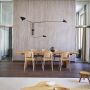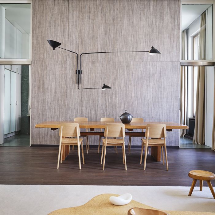 À travers sa forme, la Chaise Tout Bois exprime l'intention de Prouvé de fournir une solidité supplémentaire au niveau de la transition entre l'assise et le dossier, là où l'anatomie humaine exerce la charge la plus importante. L'aspect et le toucher chaud du bois offrent un contraste intéressant avec la conception structurelle pratique, typique de l'approche fonctionnelle de Jean Prouvé.