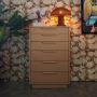Accueillez le design Space Age des années 70 dans votre intérieur. Pour ceux qui osent être différents et qui n’ont pas peur d’un peu de piquant et de couleur. Les commodes sont de véritable accroche-regards et sont favriquées en bois Sungkai vitré.