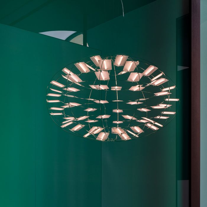 Interprétation et prédiction des technologies futures sont les thèmes que sous-entendent Chloris, un projet de recherche de deux ans mené par Arihiro Miyake. Une lampe suspendue qui explore le paradigme du design atmosphérique. Encadrées par une structure conductrice, des sources LED individuelles sont intégrées dans des diffuseurs en polycarbonate, flottant dans l’air.