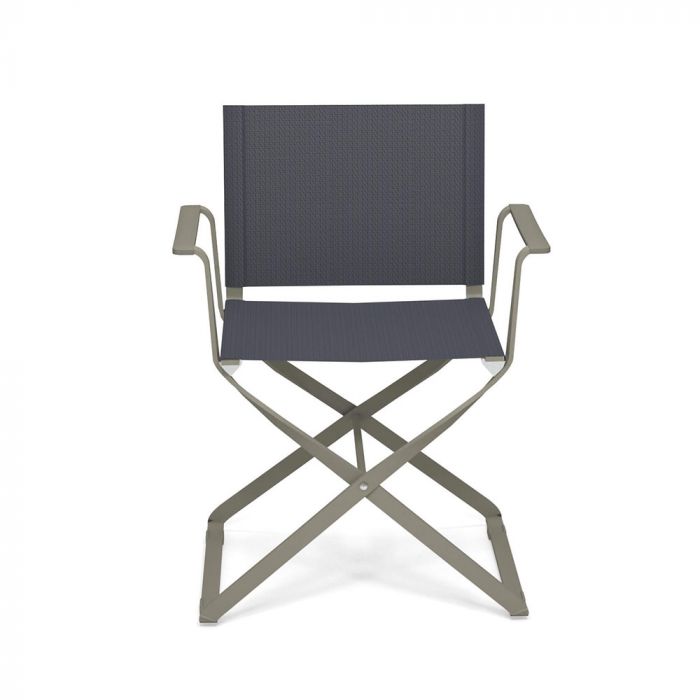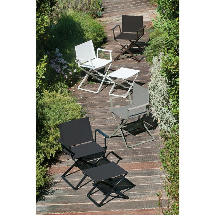 À la fois minimaliste et recherché, le fauteuil de metteur en scène Ciak, signé Stefan Diez, est réalisé en aluminium extrudé avec des éléments en inox, associés à un tissu technique spécial extérieur. Formes recherchées, attention au détail et association de matériaux technologiques sont ses principales caractéristiques, pour donner vie à un produit solide et intemporel, adapté à différents espaces.