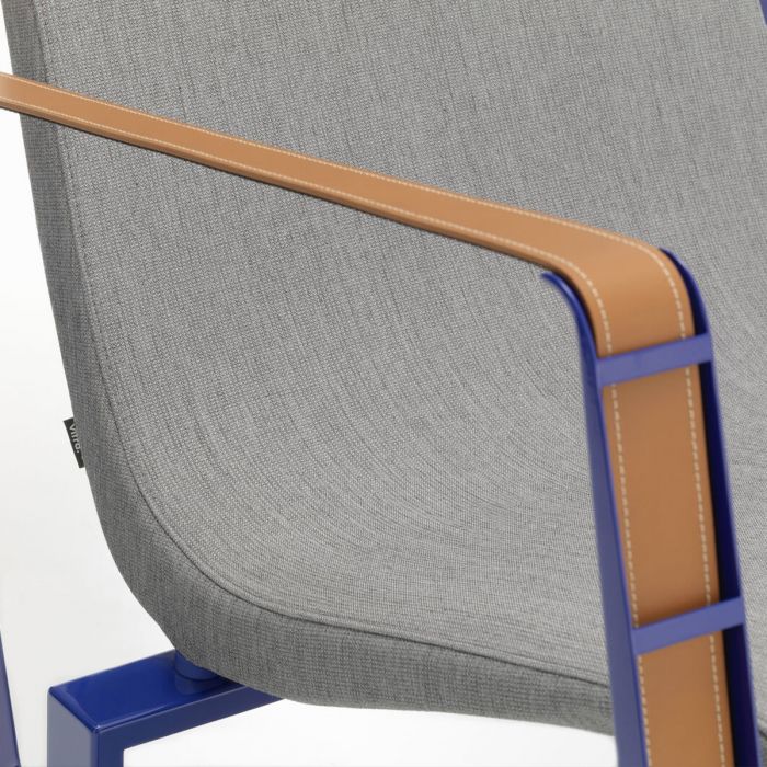 Conçu dans le cadre d’un concours pour l’ameublement des chambres de la cité universitaire de Nancy, le fauteuil Cité compte parmi les premiers chef-d’oeuvre de Jean Prouvé. Prouvé lui-même utilisait ce fauteuil aux lignes dynamique, avec ses patins caractéristiques en tôle laquée et ses accoudoirs formés par de larges courroies de cuir, dans son salon. Des dimensions généreuses et un rembourrage accueillant contribuent au confort de Cité.