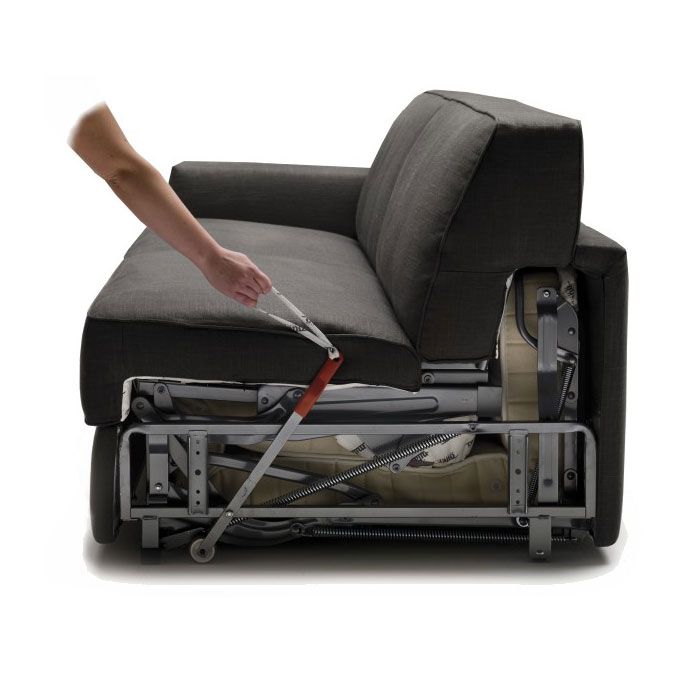 Le mécanisme Lampolet permet de déplier et refermer le canapé convertible d'un seul mouvement rapide, sans enlever les coussins. Les matelas, épais 16/18 ou 14 cm sont disponibles, en fonction du modèle souhaité, à ressorts biconiques, ressorts indépendants ensachés, polyuréthane, mousse à mémoire de forme et latex. La hauteur de 18 cm permet d'utiliser le canapé fréquemment pour s'offrir un sommeil réparateur. Enfin, pour un maximum de confort il est possible de choisir le sommier à lattes, disponible avec supports auto-réglants adaptables aux formes et au poids du corps.
