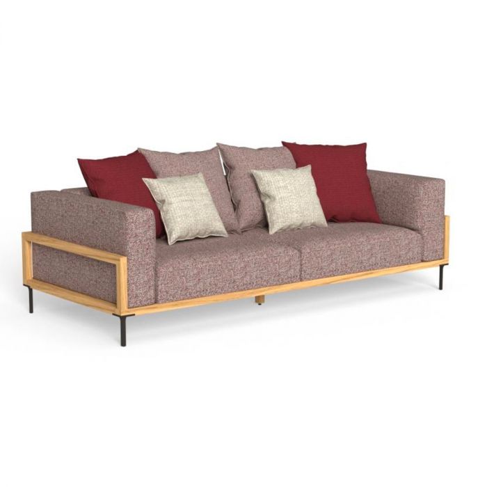 Le design de la collection CleoSoft Wood contraste la ligne rigide de la structure en bois du canapé d’extérieur 3 places avec celle plus douce des autres éléments. Le rembourrage volumineux de l’assise et du dossier, en tissu amovible, facile à laver et résistant aux agents atmosphériques, repose sur la solide structure en bois, un matériau qui caractérise toute la collection. Le rembourrage est en mousse à séchage rapide.