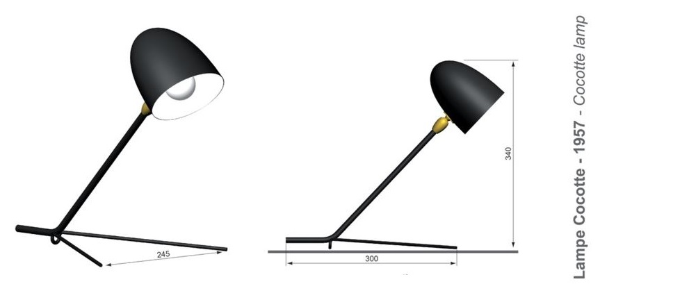 Petite lampe de table ou de bureau Cocotte du designer Serge Mouille. Modèle numéroté.