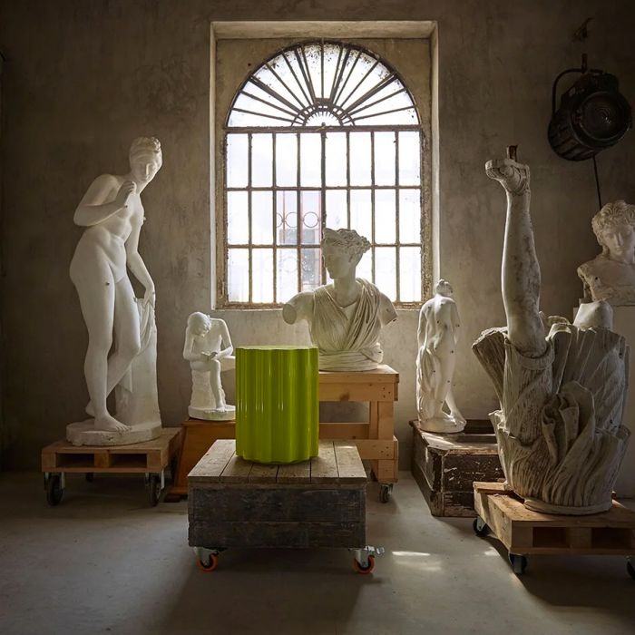 Le tabouret Colonna appartient à la collection « Kartell goes Sottsass - A Tribute to Memphis » lancée pour rendre hommage au mouvement fondé par le maître du design Ettore Sottsass. Colonna se distingue par sa polyvalence : elle peut en effet être utilisée soit comme tabouret soit comme table d’appoint.