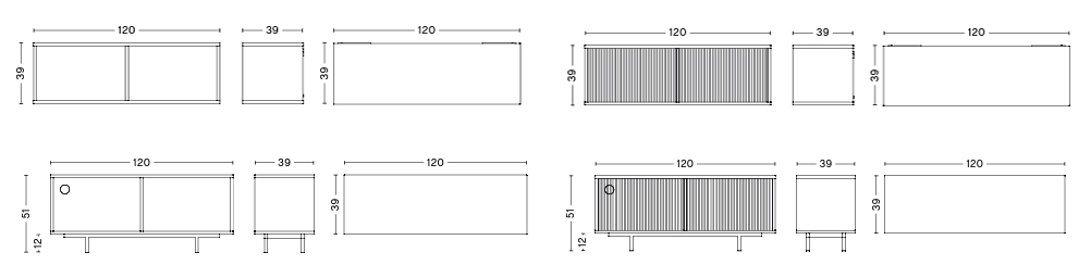 Avec pieds : L 120 x H 51 x Prof. 39 cm