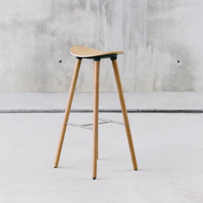 Le tabouret Coma Wood, réalisé avec des matériaux issus des forêts durables, dispose d’une base à 4 pieds en chêne naturel ou teinté.