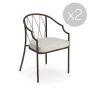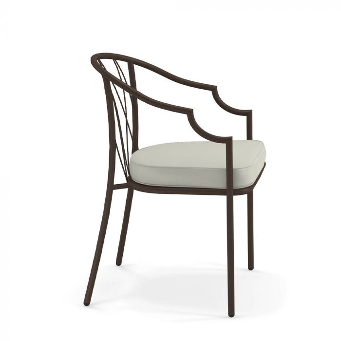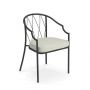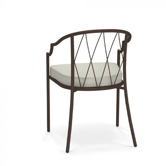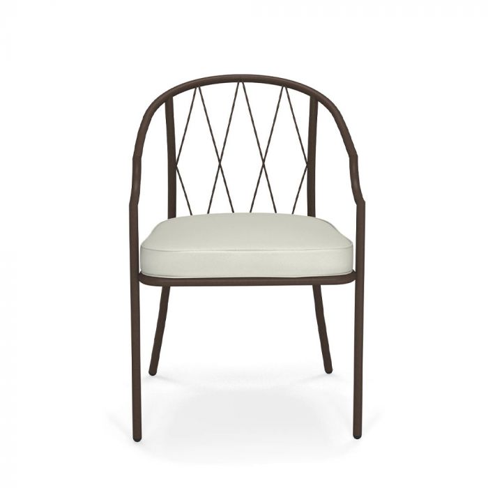Como est une collection complète de sièges et tables comprenant : chaise et petit fauteuil dining, petit fauteuil dining à dossier haut, fauteuil, canapé, table ronde et table basse. La structure des sièges est en tube d’acier Ø 22, de 2 mm d’épaisseur, pour de hautes prestations en extérieur. Des ronds d’acier, qui constituent le motif décoratif du dossier, sont rattachés à la structure : ces ronds sont soudés par projection, selon une technologie qui permet une fusion des ronds techniquement plus propre, avec un effet esthétique mieux fini et, partant, un risque de rouille moins élevé. La tôle étirée de l’assise est galvanisée à chaud, en vue d’une résistance élevée en extérieur, et est elle aussi soudée à la structure par projection. Comme pour tous les produits EMU en acier, il est prévu un pré-traitement de cataphorèse, puis l’application d’une peinture poudre thermodurcissable ; le produit est ainsi recouvert d’une couche de peinture d’une épaisseur homogène, présentant un degré élevé d’adhérence et de résistance. La présence d’embouts en nylon à l’extrémité des pieds permet de protéger et de mieux déplacer le produit.