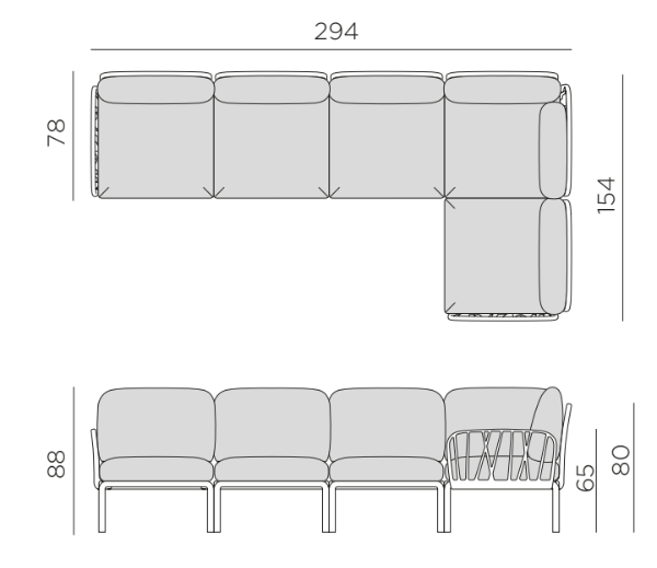 L 294 x Prof. 78-154 x H 88 cm