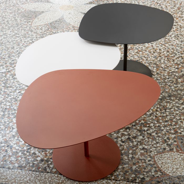 Composé des tables basses Galet 01, 02 et 03, l'ensemble gigogne permet tous les jeux de couleurs. Imaginez votre propre harmonie colorée, de la plus sobre à la plus audacieuse. Les tables gigognes Galet sont désormais des incontournables pour meubler votre salon tout autant que votre terrasse dans la version Extérieur.