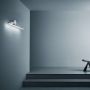 Appareils d’éclairage à lumière diffuse pour installation murale composés d’un mât horizontal (modèle Wall 1) ou d’un mât vertical et horizontal (modèle W2). Chaque mât est constitué d’un corps en aluminium extrudé usiné et anodisé coloris champagne et d’un diffuseur en silicone optique platinum strié intégré (CRI 90). Chaque modèle comprend sa propre rosace dont l’électronique intégrée permet l’utilisation de différents systèmes de variation.