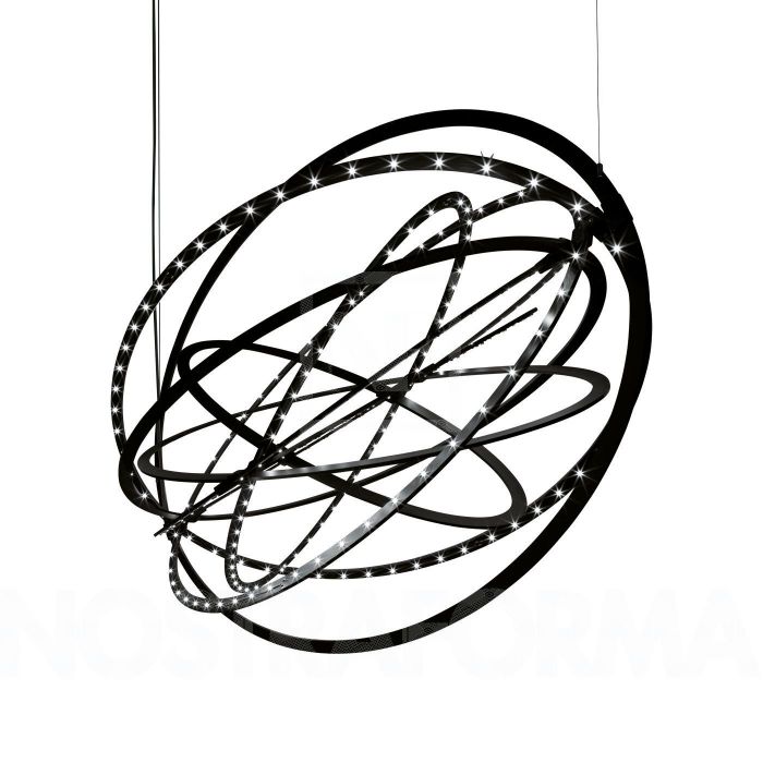 Copernic est une suspension dessinée par Carlotta de Bevilacqua & Paolo Dell'Elce pour Artemide. Suspension stellaire aux courbes généreuses. Elégante et sublime, La suspension Copernic n'a pas été choisi par hasard et matérialise l'héliocentrisme. Comme Copernic, vous aurez du soleil au centre de votre intérieur. Neuf ellipses concentriques et mobiles soutiennent un circuit de 384 leds blanches et permettent d'orienter votre lumière. Ces ellipses tournent indépendamment sur deux axes différents. Et la surprise, lorsque la suspension est éteinte, la suspension est plate.