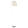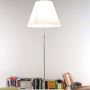Lampadaire à la forme généreuse avec structure télescopique (réglable en hauteur). La structure est en aluminium et l'abat-jour en polycarbonate blanc. Sous une allure faussement classique, Grande Costanza impose une présence très design, alliant séduction, élégance et sobriété. Son abat-jour surdimensionné est réalisé en polycarbonate. Il diffuse une lumière douce et intense, idéale pour éclairer chaleureusement les volumes des intérieurs privé ou publics. Le contrepoids en acier chromé mat assure la stabilité tout en apportant une dimension décorative. La réglage de l'intensité se fait grâce à un variateur sensoriel en forme de petite tige, située sous l'abat-jour.
