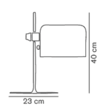 Lampe de table Coupé a été créé en 1967 par le designer Joe Colombo. En 1968 Coupé a reçu le «International Design Award» de l'Institut Américain de Design à Chicago. Elle fait partie de la collection permanente du MoMA de New York et de la «Neue Sammlung» au musée de Munich. Lampe de table Coupé de Oluce diffuse la lumière directe avec base en métal verni, tige chromée, réflecteur orientable et réglable en aluminium verni.
