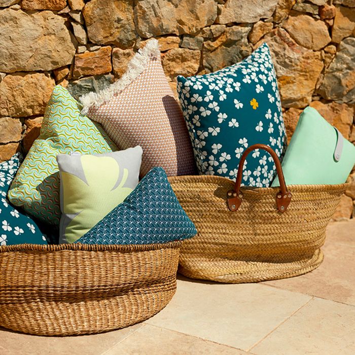 Coussin trèfle de Fermob par Tristan Lohner. Le coussin Trèfle est l'accessoire déco outdoor indispensable ! Confectionné dans un tissu Jacquard, de fabrication française, traité anti-tâches et anti-moisissure, ce coussin design outdoor a le bon goût d’être déhoussable et lavable en machine. Très confortable, il s'associe avec les autres coussins de la collection Trèfle. Un moelleux à toute épreuve, dans le jardin, sur le canapé du salon, ou encore dans la suite parentale.