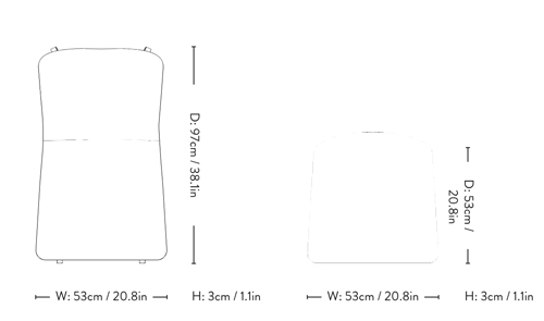 Coussin d’assise et dossier : L 53 x larg. 97 x H 3 cm