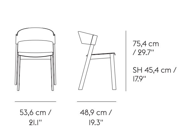 Faisant référence aux valeurs de l'artisanat avant-gardiste et de la matérialité scandinave, la Cover Side Chair est une perspective élégante sur la chaise en bois intemporelle, conçue dans une laque écologique à base d'eau. Avec son dossier incurvé qui se plie élégamment autour de ses pattes arrières et lie le design ensemble, la chaise latérale Cover explore les possibilités du placage, associées à un confort profond, une expression moderne et une base solide en bois massif. La conception consiste à empiler 4 chaises sur le sol et 10 chaises sur le chariot à chaises Cover Side.