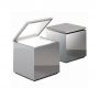 Cuboluce, pour lire au lit. Elle s’allume en soulevant le couvercle et s’éteint en l’abaissant, évitant ainsi la recherche de l’interrupteur. Elle émet un faisceau lumineux concentré, orientable à l’aide du couvercle/réflecteur. Acquise dans la “Collection d’Étude de Design” du Musée d’Art Moderne de New York.
