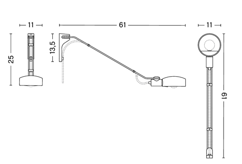 L 11 x Prof. 61 x H 25 cm