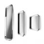 Matériaux : Cadre en aluminium extrudé poli. Joints en fonte d’aluminium. Miroir avec pellicule plastique de protection sur le dos. Crochets en fer zingué pour la fixation murale inclus