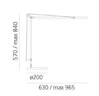 Profondeur avec bras à angle droit : 63-96.5 cm