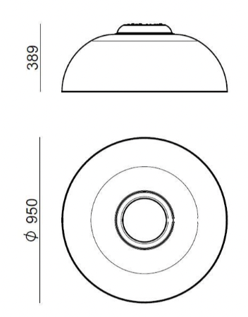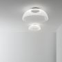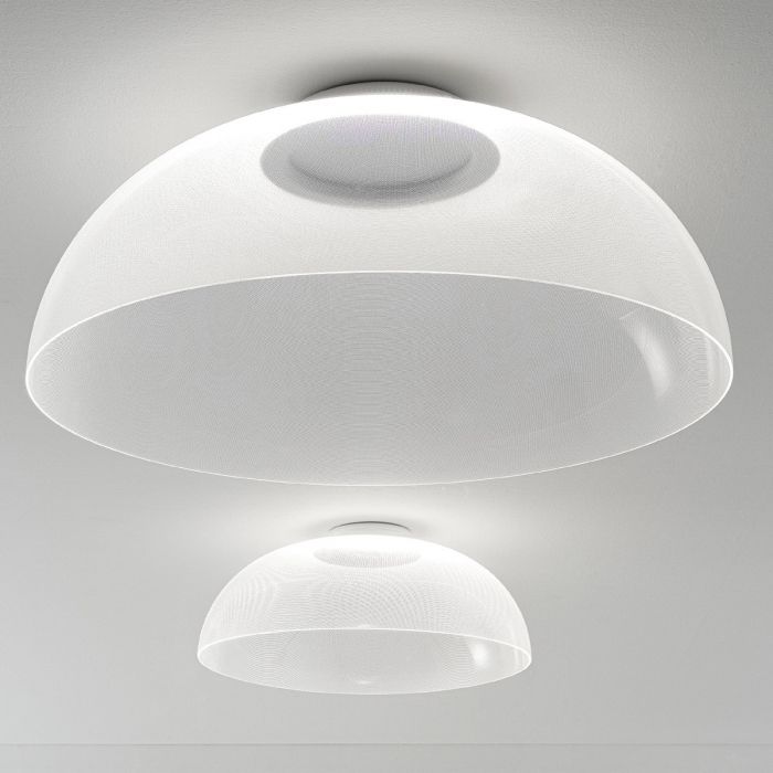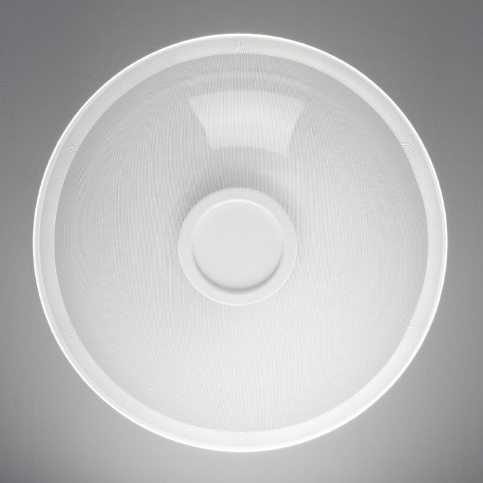 Demì, lorsqu'il est éteint, est une grande coupole transparente. Grâce à la technologie exclusive OptiLight™, lorsqu'il est allumé, le bord inférieur et les milliers de micro-incisions laser de la surface diffusent une lumière douce et homogène. Celle-ci est générée par une source LED invisible située dans l'anneau du grand trou supérieur qui, comme dans l'ancien Panthéon, est la source de lumière.