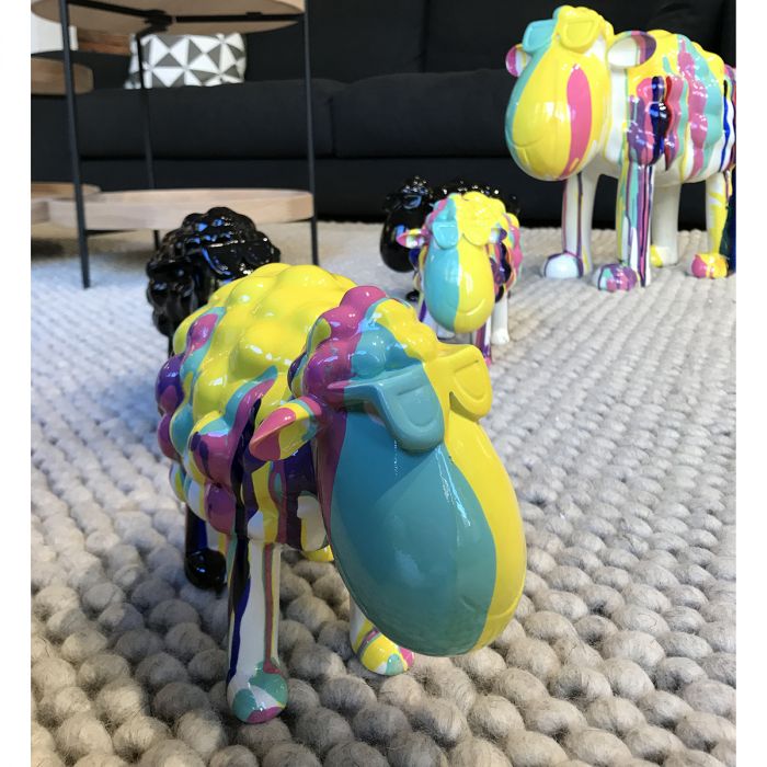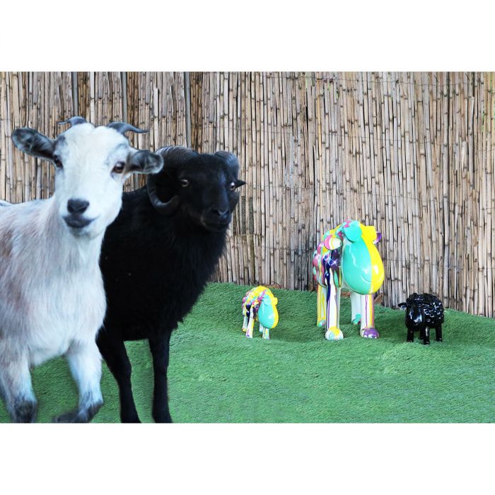 Cette pièce est une explosion de couleurs, caractéristique du style Pop Art d'Artypopart. La peinture coulante (drip painting) sur la toison de Deniro apporte une énergie et un dynamisme inégalés, faisant de cette statue un véritable point focal joyeux. En plus de son esthétique décalée, Deniro véhicule un message écologique fort, rappelant son rôle d'agent d’entretien écologique ! Les chèvres, qui se régalent de mauvaises herbes et escaladent tout sur leur passage, sont l'alternative parfaite et amusante à la tondeuse à gazon. Deniro apporte ainsi un message de simplicité et de nature dans votre foyer.