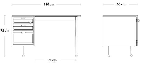 L 120 x H 72 x larg. 60 x épaisseur plateau 2 cm